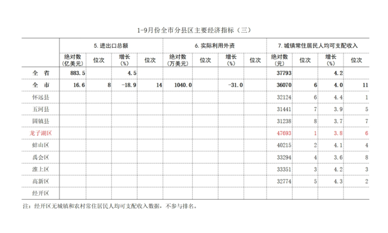 前三季度,城鎮(zhèn)常住居民人均可支配收入47693元,居全市第1位;增長3.8%,低于全市平均增速0.2個百分點,居全市第6位;低于全省平均增速0.4個百分點;較上年同期降低1.3個百分點,前移1位。