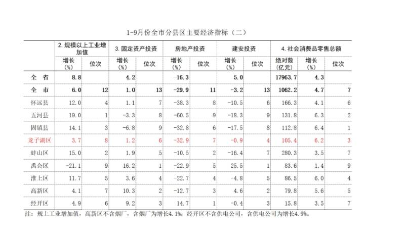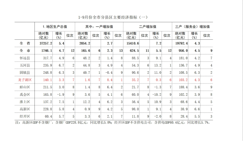 前三季度,GDP完成140.1億元,居全市第6位;增長3.3%,低于全市平均增速1.4個百分點,居全市第6位;低于全省平均增速2.1個百分點;較上年同期降低3.2個百分點,后移1位。
