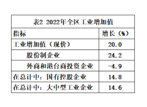 【工業(yè)和建筑業(yè)】 年末全區(qū)規(guī)模以上工業(yè)企業(yè)達56戶,比上年增加5戶。全年規(guī)模以上工業(yè)企業(yè)實現(xiàn)增加值增長0.6%。股份制企業(yè)生產(chǎn)增長較快,增長24.16%。