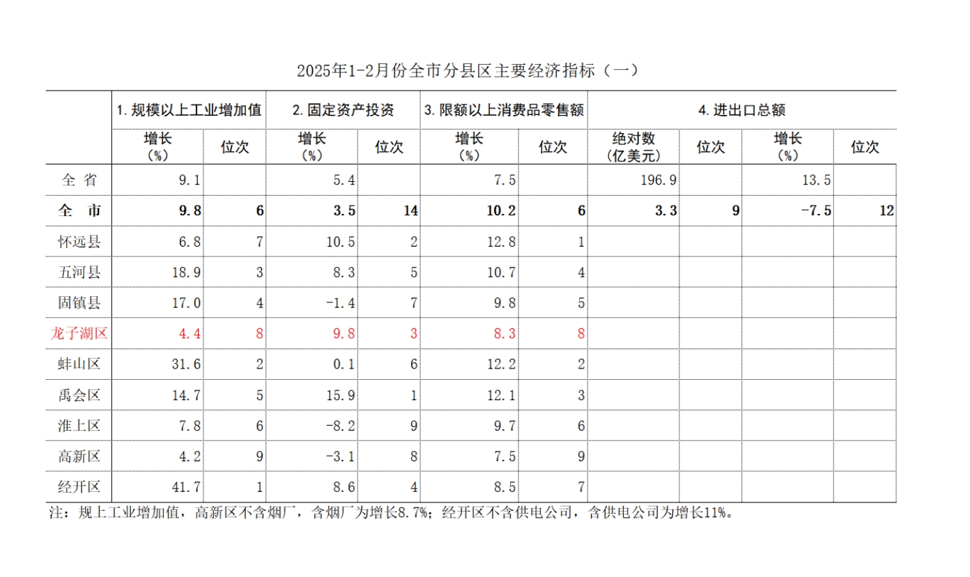 【經(jīng)濟指標(biāo)】2025年1-2月龍子湖區(qū)主要經(jīng)濟指標(biāo)