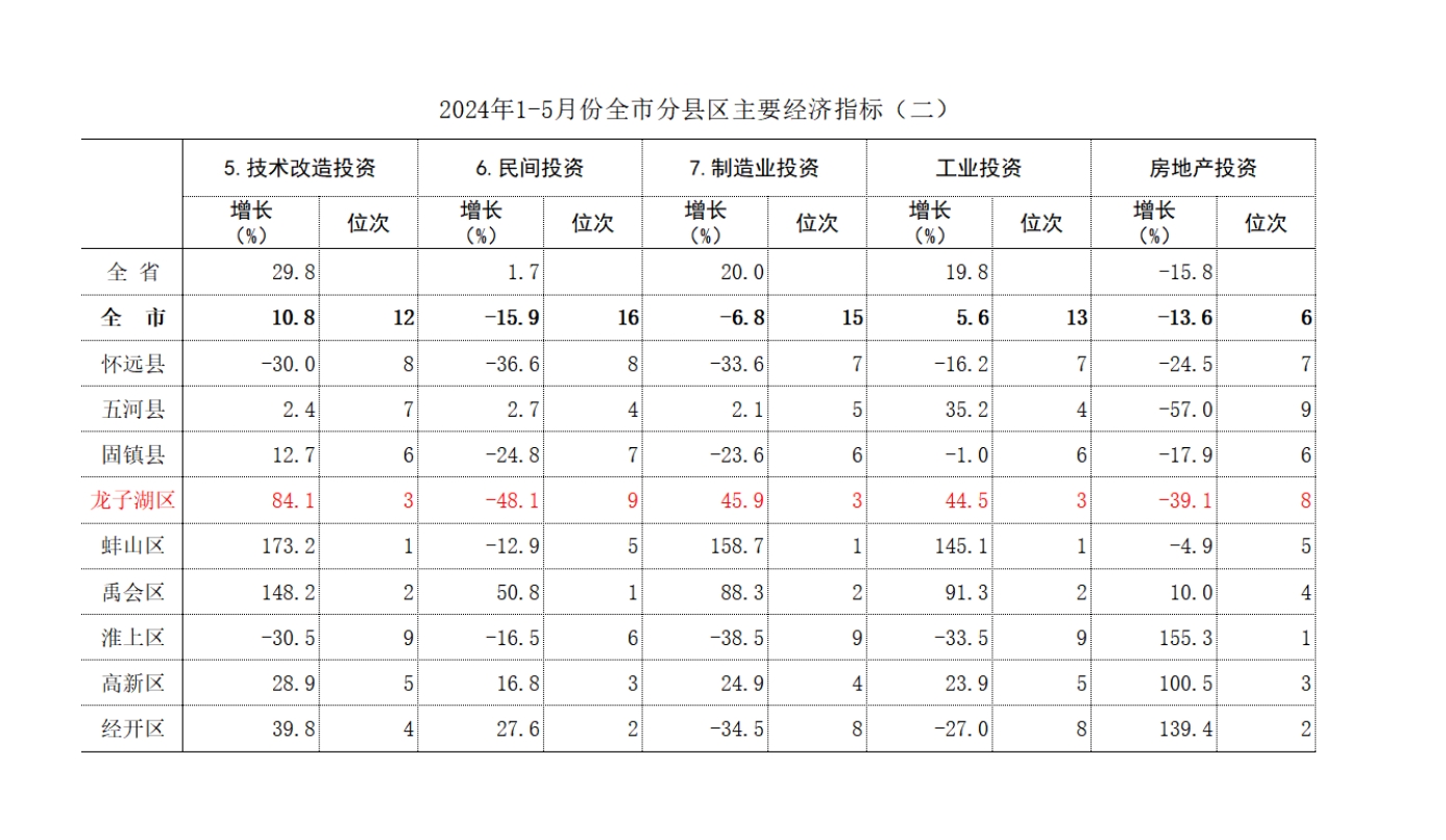 1-5月,固定資產(chǎn)投資增長5.6%,高于全市平均增速4.2個百分點,居全市第5位;高于全省平均增速2.0個百分點;較上年同期降低10.1個百分點,后移3位。