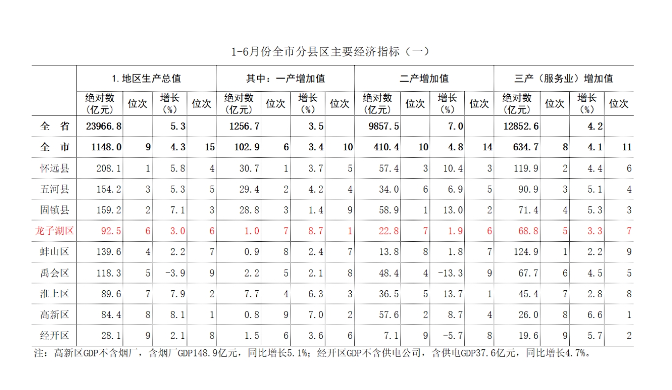 1.地區(qū)生產(chǎn)總值總量全市第6、增速全市第6