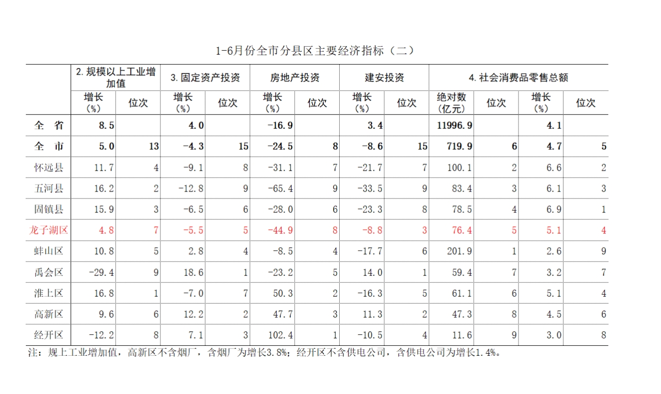 上半年,規(guī)上工業(yè)增加值增長(zhǎng)4.8%,低于全市平均增速0.2個(gè)百分點(diǎn),居全市第7位;低于全省平均增速3.7個(gè)百分點(diǎn);較上年同期提高3.3個(gè)百分點(diǎn),前移1位。