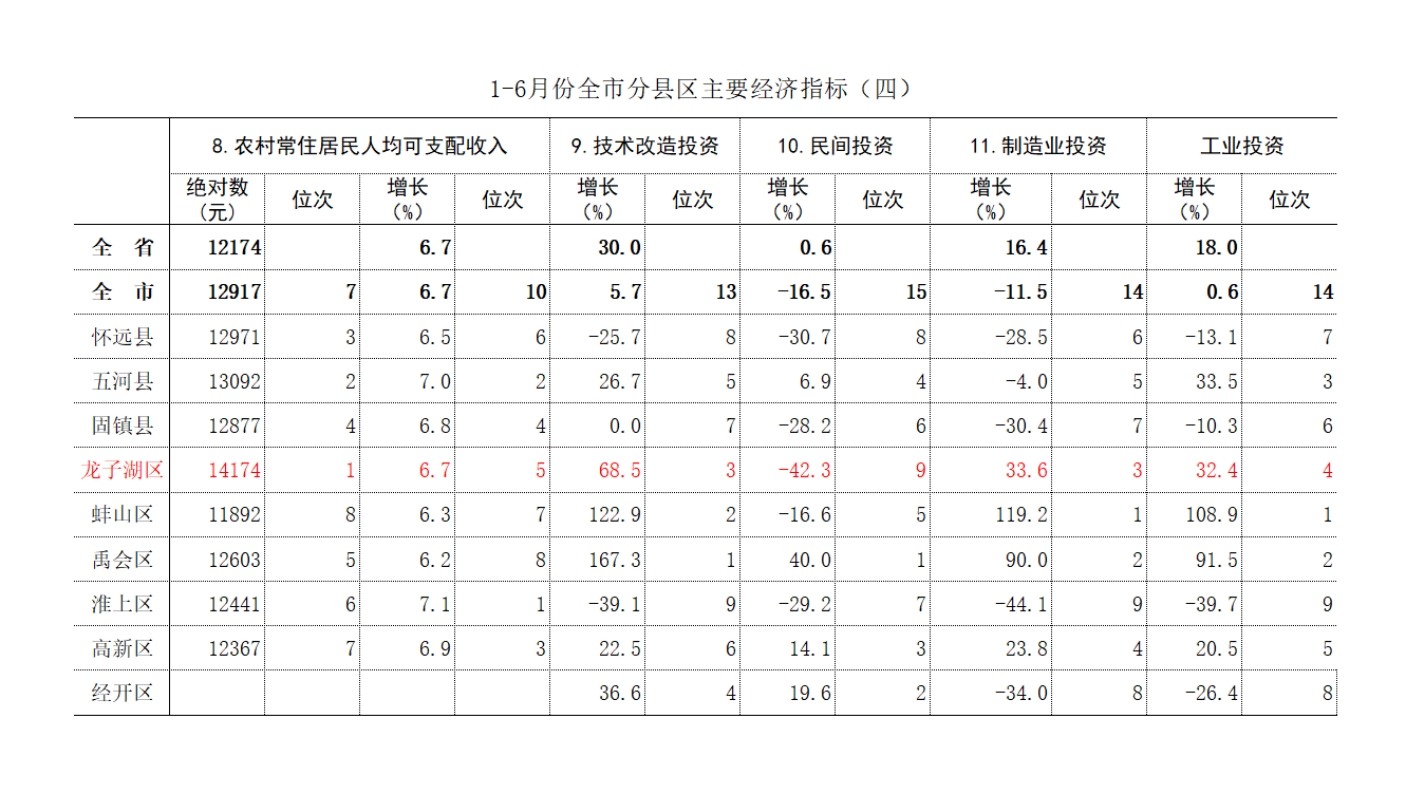 上半年,農(nóng)村常住居民人均可支配收入14174元,居全市第1位;增長(zhǎng)6.7%,與全市平均增速持平,居全市第5位;與全省平均增速持平;較上年同期降低1.4個(gè)百分點(diǎn),后移4位。