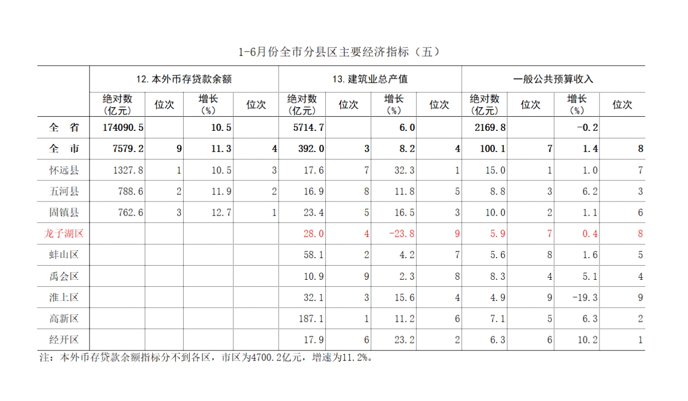 本外幣存貸款指標(biāo)分不到各區(qū),市區(qū)人民幣存貸款余額為4700.2億元,增長(zhǎng)11.2%。