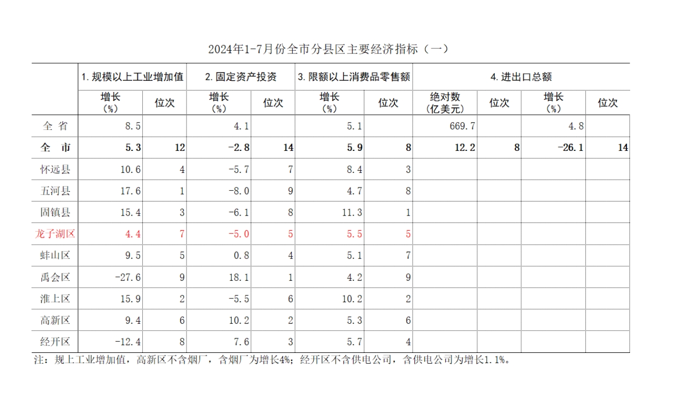 1-7月,規(guī)上工業(yè)增加值增長(zhǎng)4.4%,低于全市平均增速0.9個(gè)百分點(diǎn),居全市第7位;低于全省平均增速4.1個(gè)百分點(diǎn);較上年同期提高2.4個(gè)百分點(diǎn),前移1位。