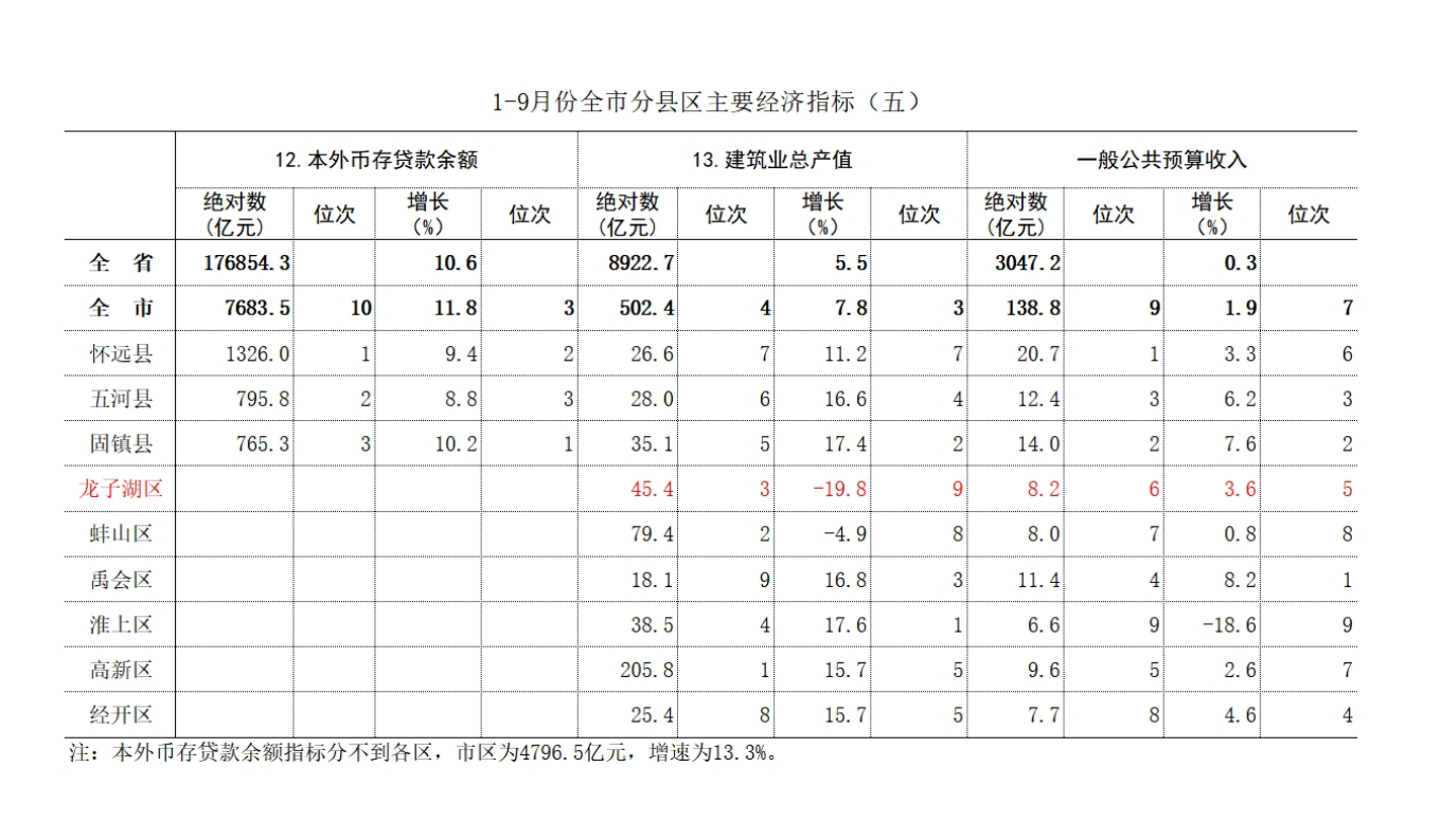 本外幣存貸款指標(biāo)分不到各區(qū),市區(qū)人民幣存貸款余額為4796.5億元,增長13.3%。