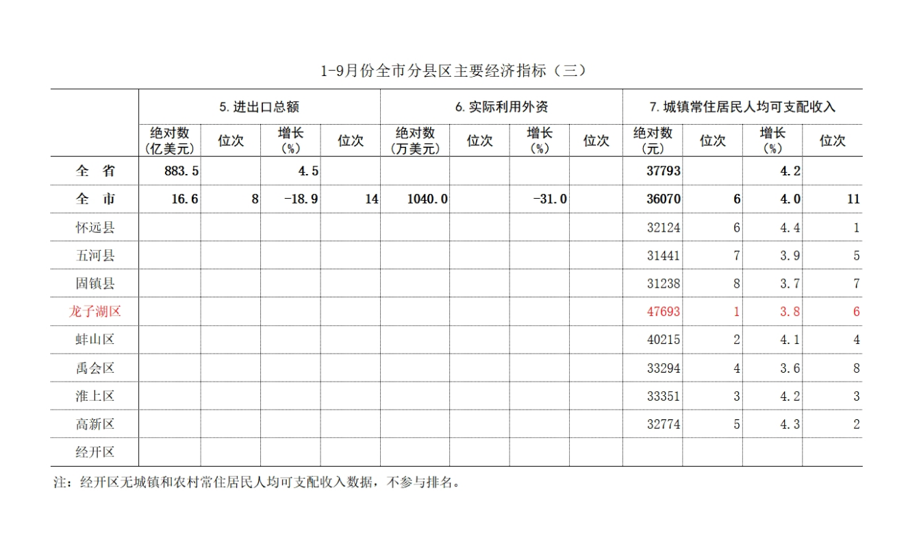 前三季度,城鎮(zhèn)常住居民人均可支配收入47693元,居全市第1位;增長3.8%,低于全市平均增速0.2個百分點(diǎn),居全市第6位;低于全省平均增速0.4個百分點(diǎn);較上年同期降低1.3個百分點(diǎn),前移1位。