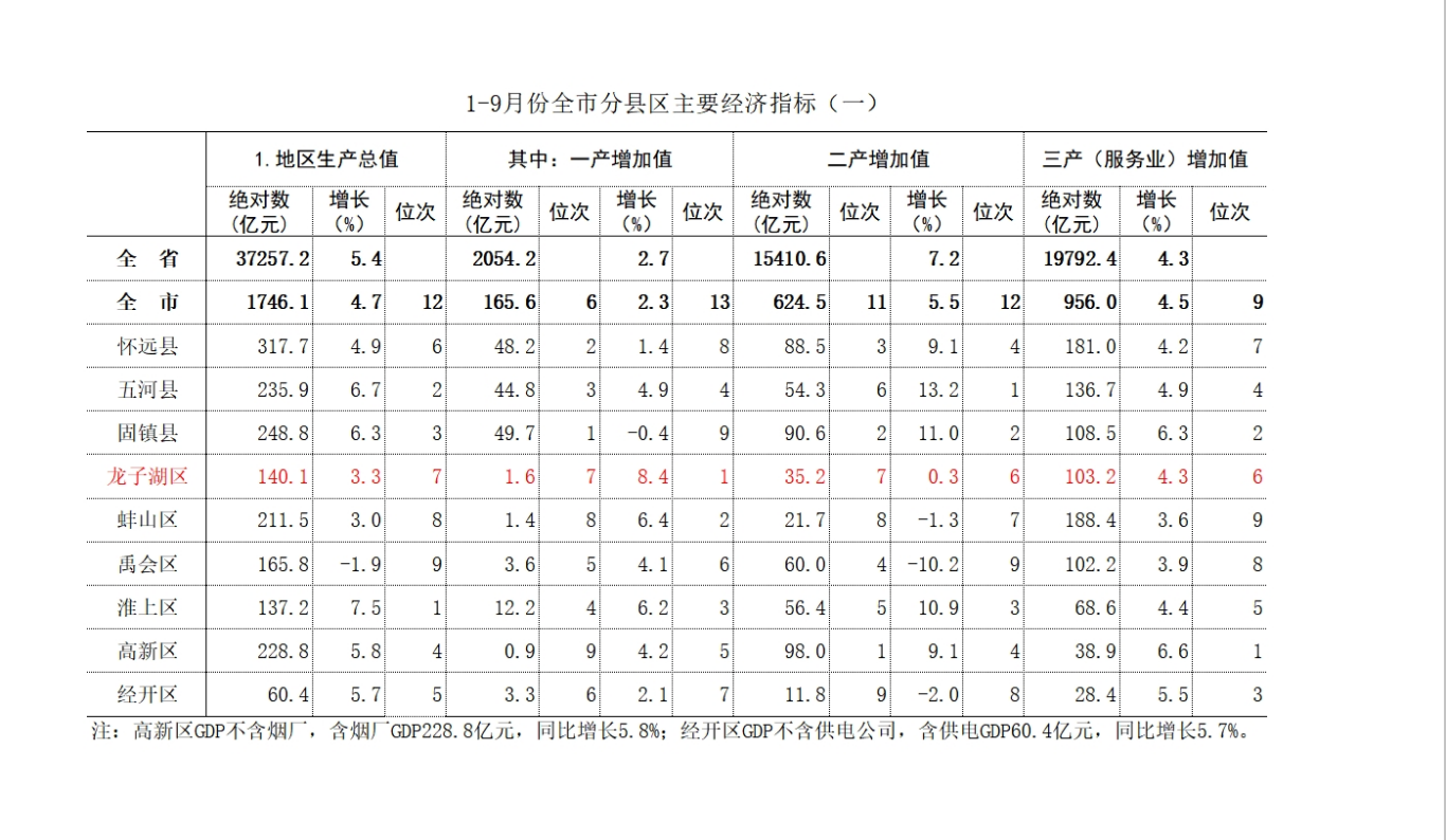 前三季度,GDP完成140.1億元,居全市第6位;增長3.3%,低于全市平均增速1.4個百分點(diǎn),居全市第6位;低于全省平均增速2.1個百分點(diǎn);較上年同期降低3.2個百分點(diǎn),后移1位。