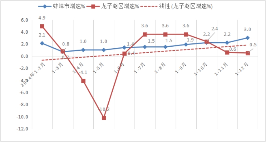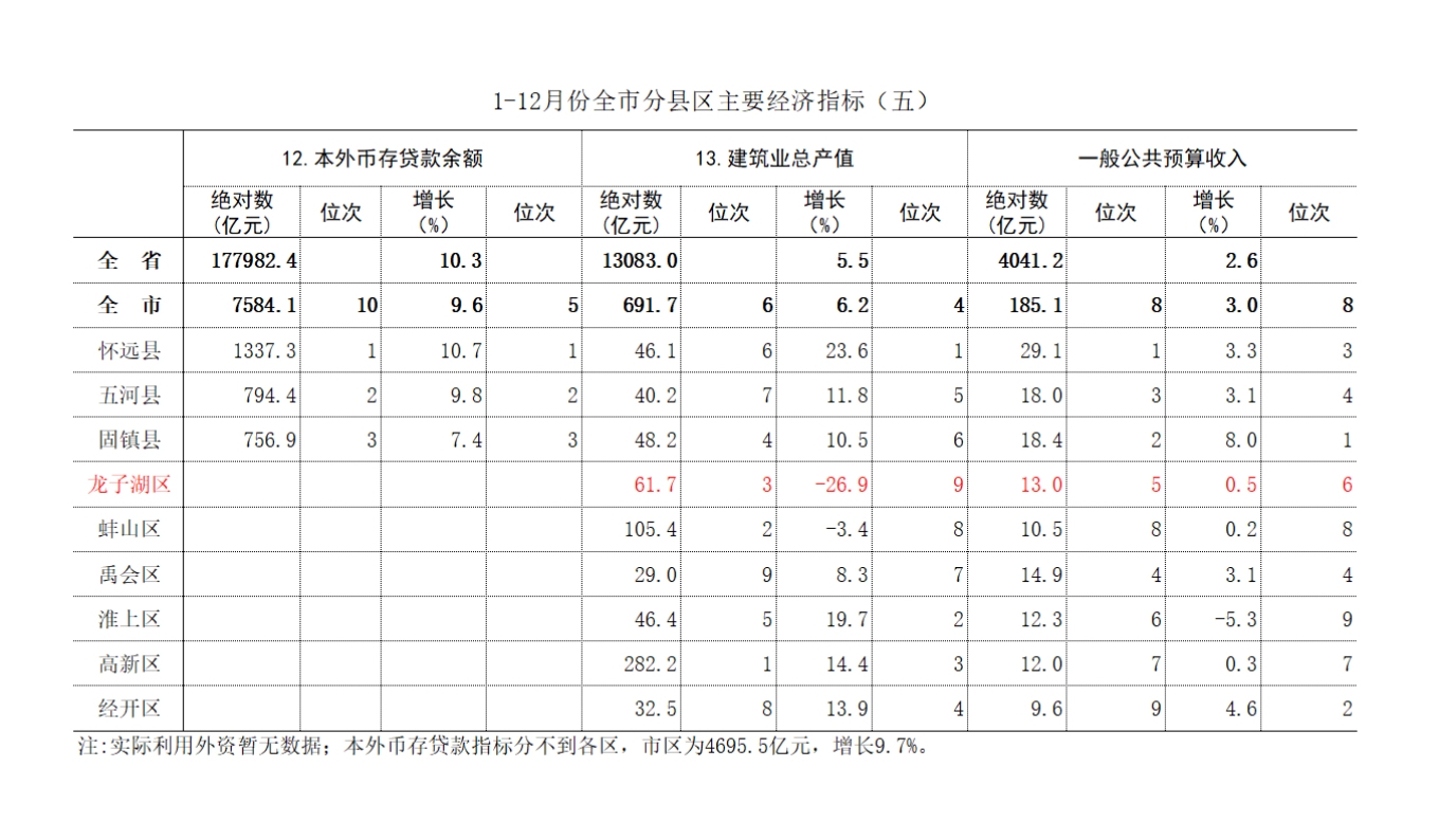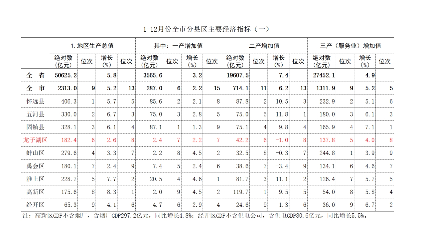 1-12月,GDP完成182.4億元,居全市第6位;增長2.6%,低于全市平均增速2.6個百分點,居全市第8位;低于全省平均增速3.2個百分點;較上年同期降低2.8個百分點,后移2位。