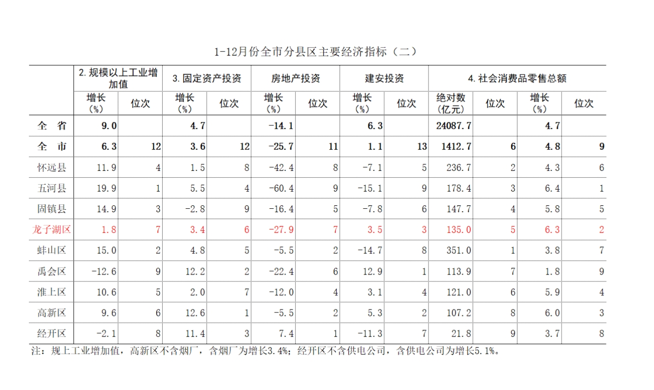 1-12月,固定資產(chǎn)投資增長3.4%,低于全市平均增速0.2個百分點,居全市第6位;低于全省平均增速1.3個百分點;較上年同期降低15.6個百分點,后移3位。