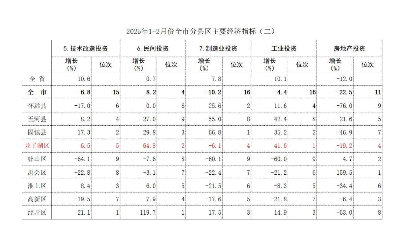 在已經(jīng)反饋的1-2月10項(xiàng)主要經(jīng)濟(jì)指標(biāo)增速中,我區(qū)1-3位的有2個(gè),分別是固定資產(chǎn)投資、民間投資;4-6位的有2個(gè),為技術(shù)改造投資、制造業(yè)投資;7-9位的有3個(gè),為規(guī)模以上工業(yè)增加值、限額以上消費(fèi)品零售額、一般公共預(yù)算收入。
