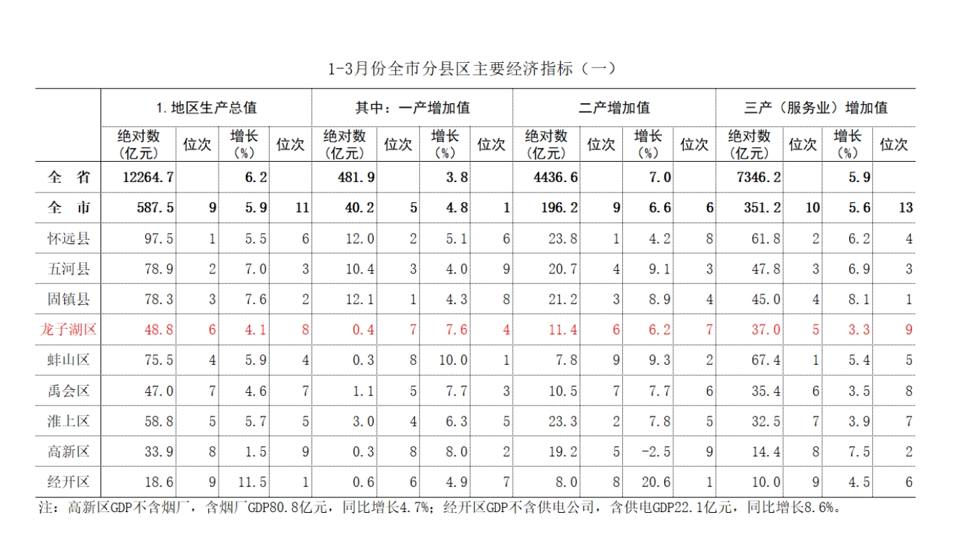 1.地區(qū)生產(chǎn)總值總量全市第6、增速全市第8