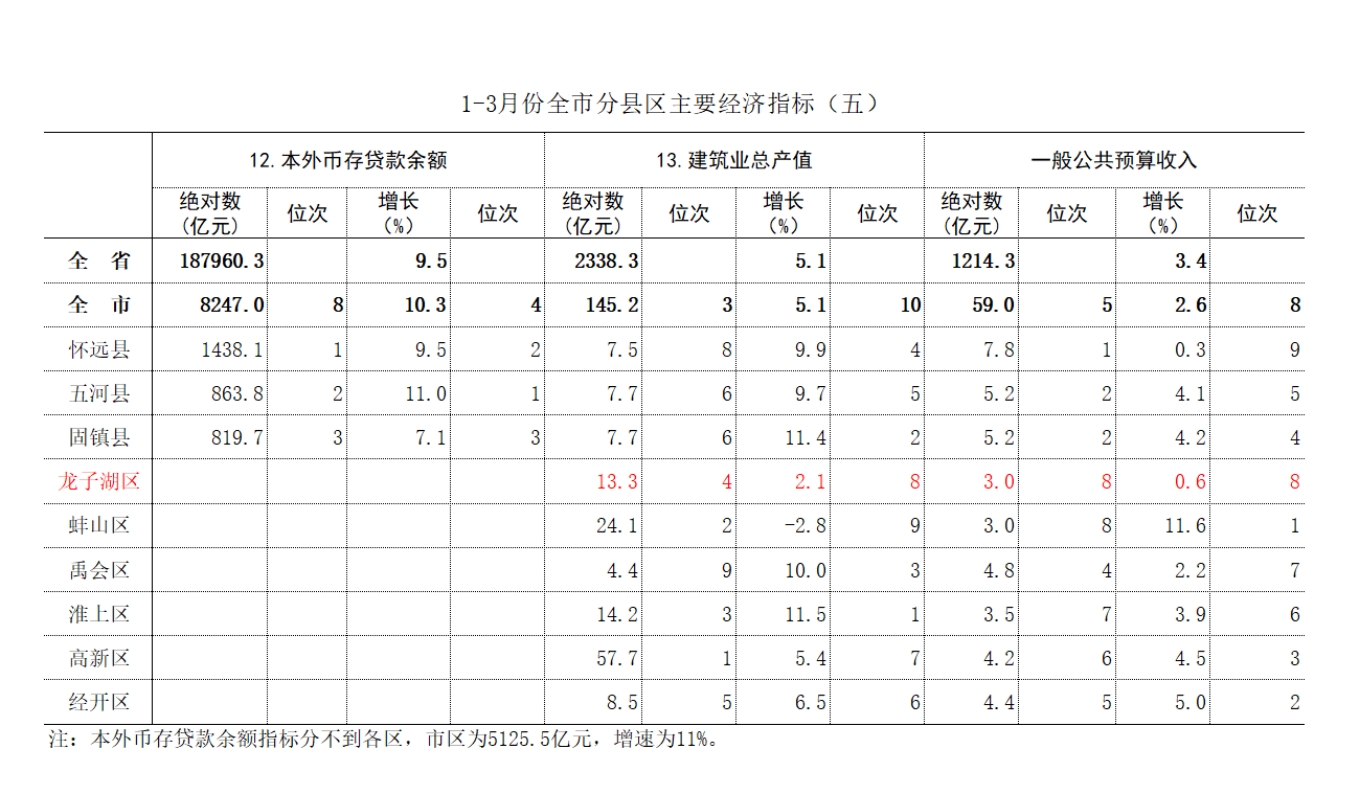 本外幣存貸款指標(biāo)分不到各區(qū),市區(qū)人民幣存貸款余額為5125.5億元,增長(zhǎng)11%。
