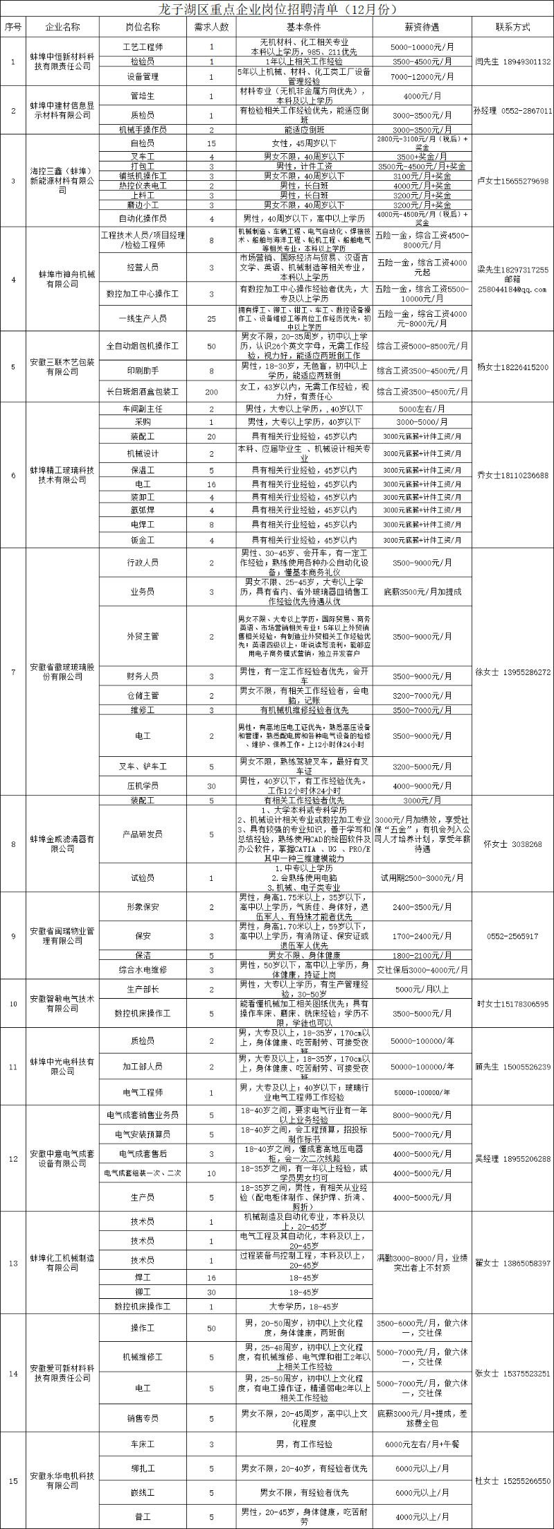 龍子湖區(qū)重點企業(yè)崗位招聘清單(12月份)