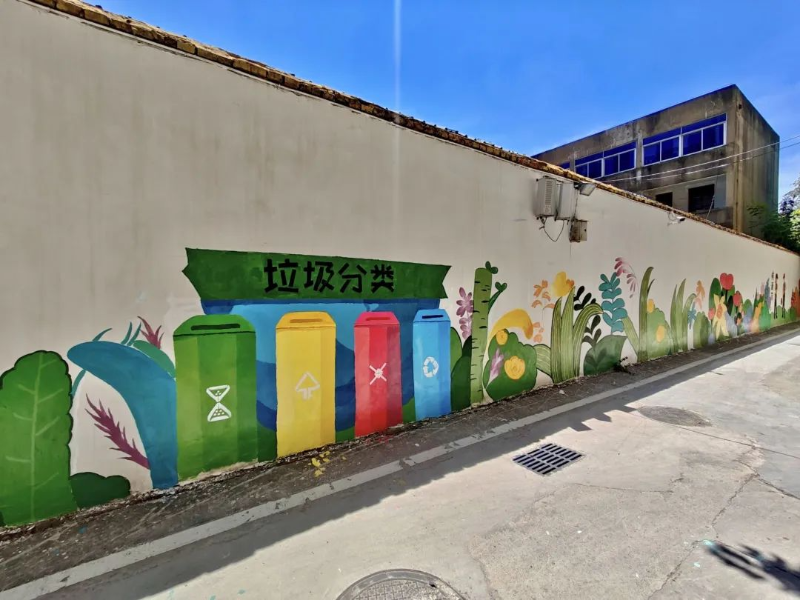 從構(gòu)思到落筆,這場創(chuàng)作更像一場熱鬧的“鄰里派對”。大學(xué)生們帶著設(shè)計初稿上門征求意見,居民們你一言我一語:“得加上咱小區(qū)向日葵志愿者的身影”“垃圾分類這點很重要,得畫得顯眼些”……最終,大家共同敲定了10余個貼近生活的場景。繪制當(dāng)天,社區(qū)的“向日葵”志愿者們、社區(qū)居民代表全程協(xié)作,有的幫著調(diào)顏料,有的給大學(xué)生遞畫筆,大家紛紛表示:“看著孩子們頂著太陽畫畫,咱也出份力!”