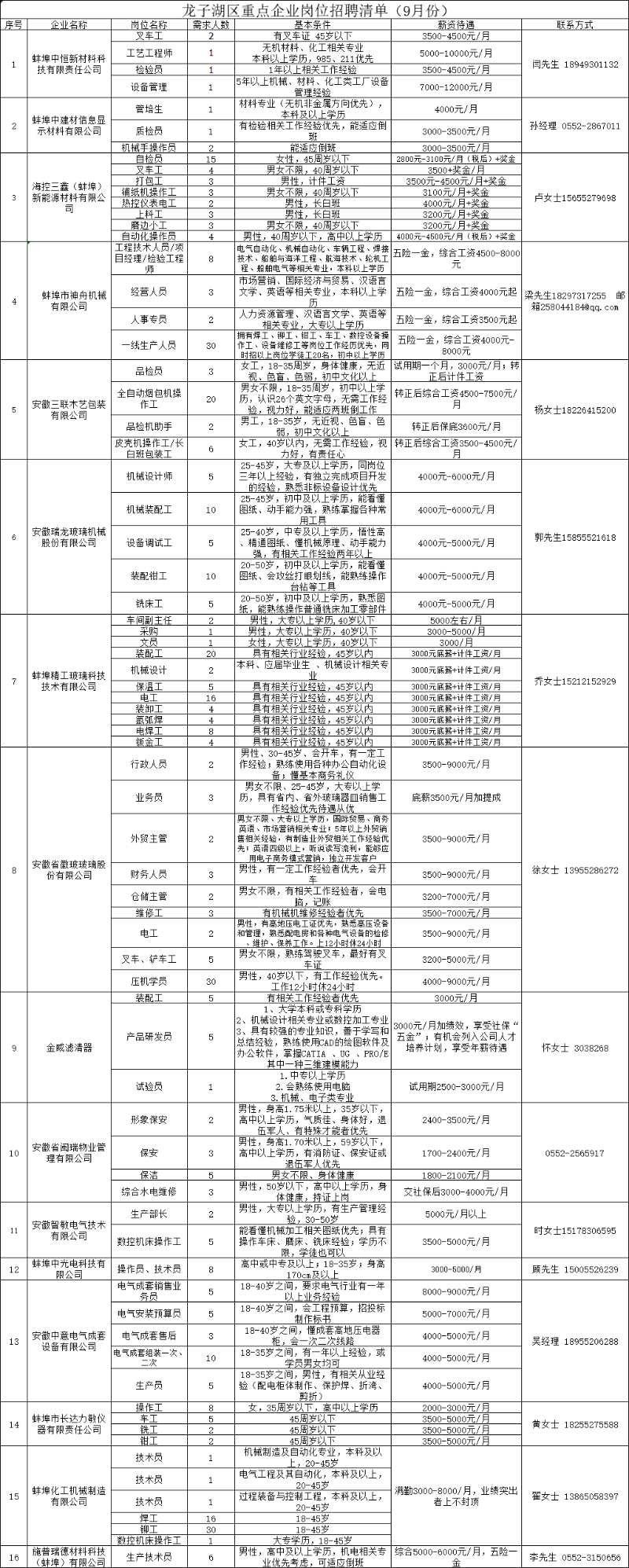 龍子湖區(qū)重點(diǎn)企業(yè)崗位招聘清單(9月份)