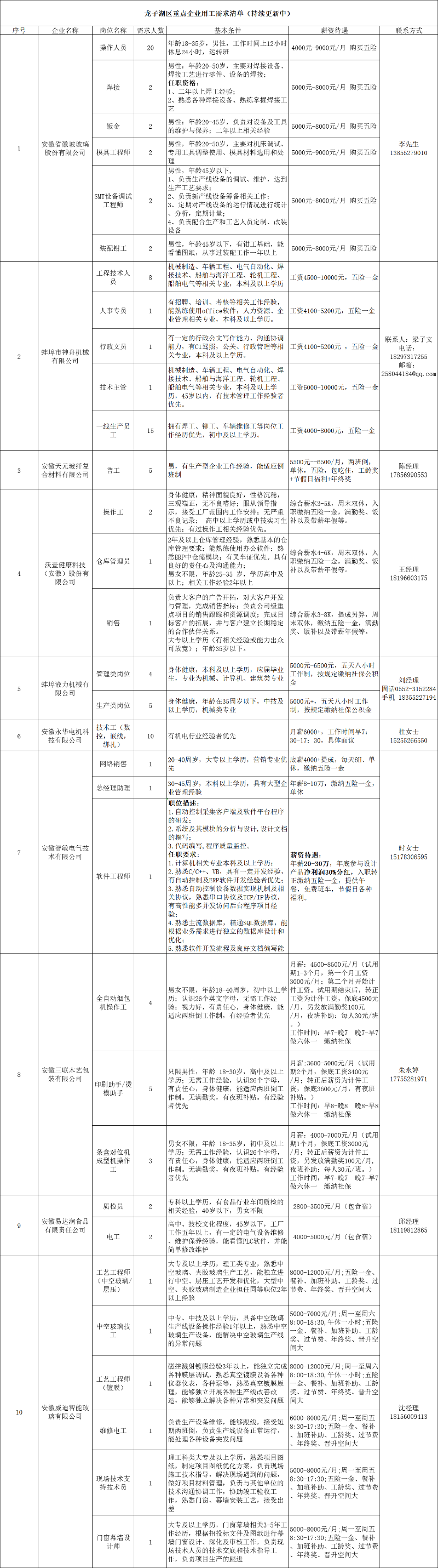 龍子湖區(qū)重點企業(yè)崗位招聘清單(5月份)