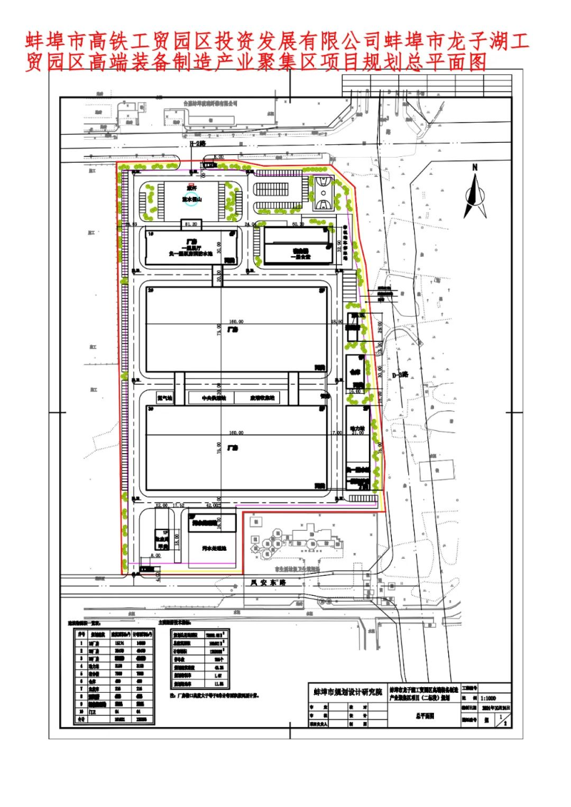 蚌埠市高鐵工貿(mào)園區(qū)投資發(fā)展有限公司擬申請(qǐng)鳳安東路北側(cè)、D-3 路西側(cè)地塊的蚌埠市龍子湖工貿(mào)園區(qū)高端裝備制造產(chǎn)業(yè)聚集區(qū)項(xiàng)目規(guī)劃方案審批。按照住房和城鄉(xiāng)建設(shè)部《關(guān)于城鄉(xiāng)規(guī)劃公開(kāi)公示的規(guī)定》的通知要求,現(xiàn)公示該項(xiàng)目規(guī)劃總平面圖。